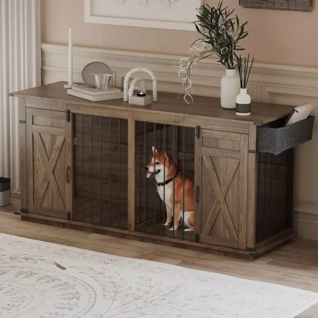 • Multifunctional furniture – serves as a dog crate, side table, or TV stand.
