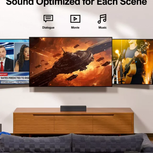 Feel every beat and explosion with BassMX Technology, engineered for deep, dynamic low frequencies that make movies and music come alive. With customizable EQ modes and a handy remote, you can fine-tune bass, treble, and surround levels to match your mood or room acoustics. Choose from Movie, Music, Dialogue, Game, and other sound modes to make every experience your own.