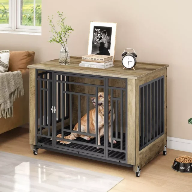 Built from high-quality wood panels and reinforced metal bars, this heavy-duty crate is made to last. It’s sturdy enough for small, medium, and large dogs, offering a safe and spacious retreat they’ll love. The solid structure ensures stability even for strong or active pups, while the smooth finish and ventilated design provide breathability and comfort. The dog crate stands up to chewing better than most traditional cages, giving you peace of mind when you’re away.