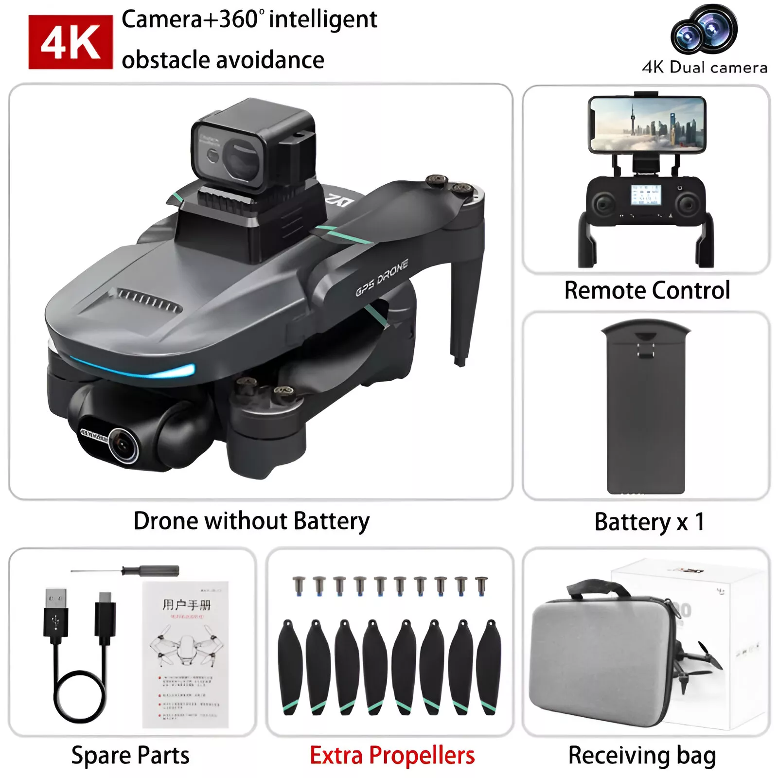 Experience smooth and secure flying with the drone’s 360° laser obstacle avoidance system—it automatically detects obstacles up to 80 feet away, keeping your flight safe and stable. The 2-axis gimbal stabilizer ensures every shot remains steady, even in windy conditions. Equipped with GPS smart return, gesture control, and intelligent tracking, the drone follows your every move and returns safely with a single tap. The brushless motor guarantees longer lifespan and quieter operation, while the 25-minute flight time lets you enjoy extended creative sessions without interruption.