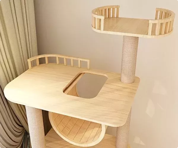 • Tree Holes and Rattan Cat Nests: Cozy spots for relaxation.