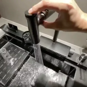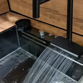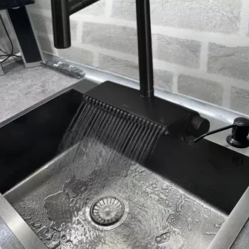 Introducing a sleek addition to your kitchen’s ensemble, a faucet that blends sophistication with functionality. Our Contemporary Black Brass Waterfall Kitchen Faucet with Pull-Out Sprayer is more than just a faucet—it’s a centerpiece that speaks volumes about your taste. With its polished surface and contemporary design, it stands out in any kitchen setting, making it the perfect match for both modern and traditional décor.