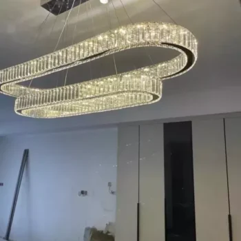 Bring a touch of sophistication to any room with our Contemporary LED Crystal Ceiling Pendant. Designed for modern living, this stylish fixture combines the allure of sparkling crystals with the sleekness of chrome, casting a warm and inviting glow in your dining room, kitchen, or bedroom. Its unique oval ring shape is not just an illumination source, it’s a statement piece that complements your home decor.