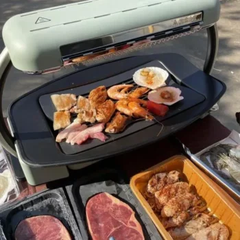 This electric grill stands out with its user-friendly design. The non-stick surface made of high-quality Ptfe ensures that your food grills evenly without sticking. The detachable oil collector makes clean-up a breeze, allowing you more time to enjoy your meals rather than cleaning up. With its powerful performance and compact size, it’s a must-have for every modern kitchen.