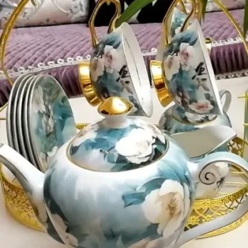 The Elegant Bone China Cup Set includes everything you need to serve tea or coffee in style. With six tea cups, six saucers, a teapot, a sugar bowl, and a milk jug, this set is comprehensively equipped to cater to your serving needs. Each piece is carefully packed to ensure it arrives in pristine condition, ready to grace your table and impress your guests.