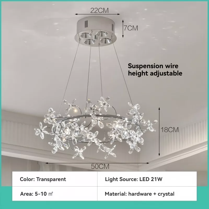 This chandelier stands out for its remarkable ability to combine luxury and versatility. Unlike ordinary lighting, its finely cut crystals create a soft, radiant glow that enhances the atmosphere in any space. Perfect for dinners, cozy evenings, or adding a touch of glamour to everyday life, it is both a functional lighting solution and an exquisite decorative element.