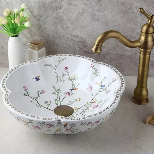 Transform your bathroom into a tranquil retreat with our Elegant Hand-Painted Blue and White Ceramic Vessel Sink with Faucet Set. This stunning washbasin features a beautiful floral and bird design that brings a touch of nature’s beauty into your home. The intricate hand-painted craftsmanship ensures that each piece is unique, making it more than just a functional sink—it’s a work of art that elevates your space.