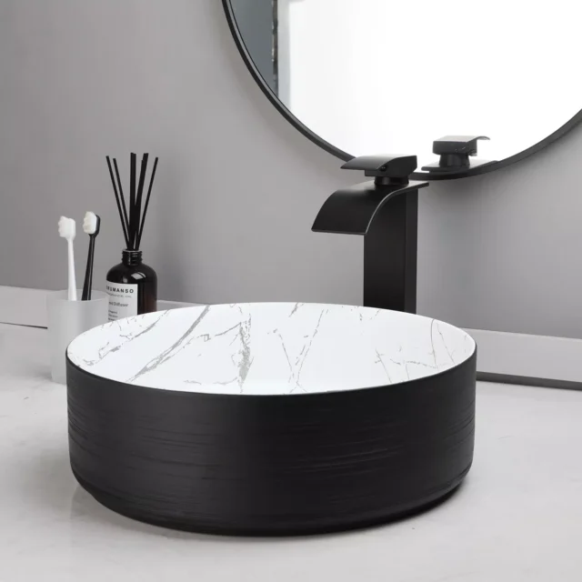 Transform your bathroom into a luxurious sanctuary with our Elegant Oval Ceramic Vessel Sink with Waterfall Faucet and Drain Set. Designed to captivate with its modern and artistic flair, this exquisite sink offers a perfect blend of beauty and practicality. Featuring a sleek oval shape and crafted from high-quality marble, this vessel sink will elevate your bathroom decor and turn everyday routines into a stylish experience.