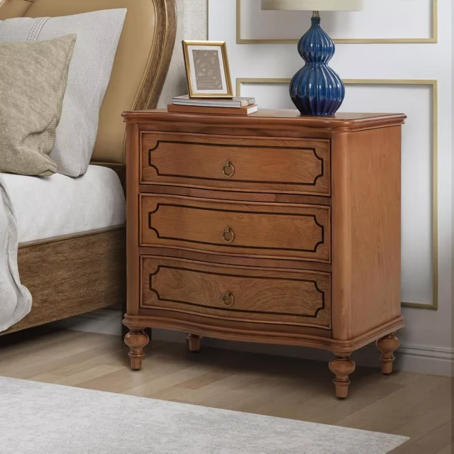 Bring timeless farmhouse elegance and smart design to your bedroom with this Farmhouse Nightstand with Locking Gun Drawer. Crafted from rustic wood with vintage carved details and classic drop handles, this 20″ bedside table adds a warm, inviting touch to any room. The tall, sturdy build and antique finish blend seamlessly with both modern and traditional interiors, making it a statement piece you’ll love for years.