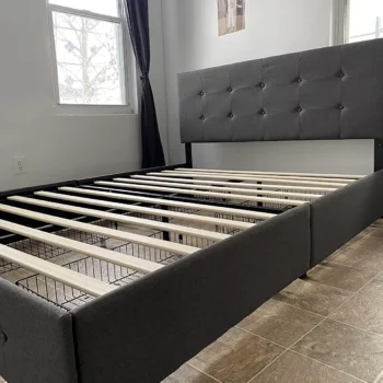 I'm the type of person who lives by the mantra "a place for everything and everything in its place," and this bed frame has fit into that philosophy perfectly. The genius of the design lies in its storage drawers. They glide effortlessly on their tracks, providing ample space for bedding, clothes, or whatever else needs a home, significantly reducing my need for additional storage furniture. It's like having a mini closet under your bed, and who wouldn't love that? The frame itself is rock solid, supporting my mattress without the slightest hint of instability or noise. I've slept like a baby ever since it arrived, without being woken up by any annoying squeaks or creaks. The linen fabric is the cherry on top, bringing a touch of modern sophistication to my bedroom with its sleek look and feel. But what has really sealed the deal for me is how this bed frame makes my room look. It’s not just about the practicality; it’s about how it elevates the space. The neutral tones of the linen fabric blend seamlessly with my décor, creating a peaceful, harmonious bedroom environment that I absolutely adore. Definitely a great purchase that has transformed my bedroom into a clutter-free sanctuary.