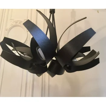 Revitalize your home with the Grand Wrought Iron Chandelier, a masterpiece of postmodern design that blends artistic flair with functional luminosity. This striking pendant light is the perfect centerpiece to enhance the ambiance of your dining room, living room, or any area deserving a touch of grandeur. With its forged wrought iron bands and clear glass shades, this chandelier captures the dynamic essence of solar flares, transforming light into a captivating display of warmth and creativity.