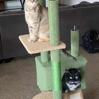 Our cat tree is not just a piece of furniture; it’s a playground, a rest area, and a scratching haven all rolled into one. The adjustable height ensures it can be easily integrated into any room, providing your cats with a personal space that’s both stimulating and secure. The unique cactus design not only adds a touch of whimsy to your decor but also caters to your cat’s instinctual need to climb, scratch, and play. Whether you have one cat or a small clowder, this cat tree is built to accommodate 4-6 kittens simultaneously, making it an ideal choice for multi-cat households.