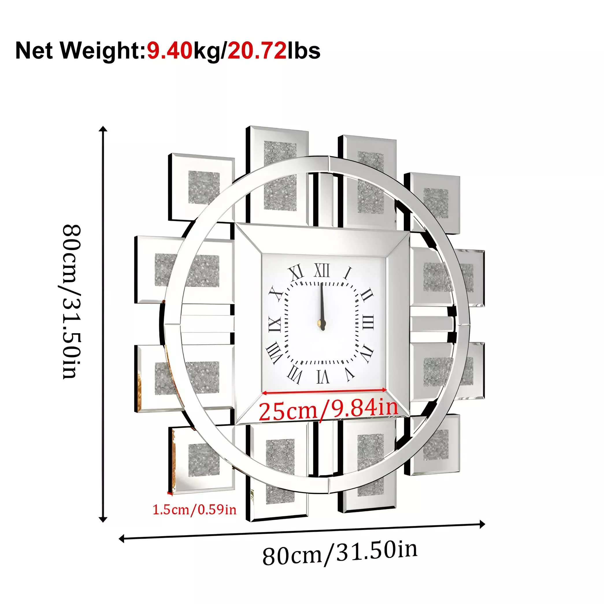 Whether you’re redecorating or looking for that one breathtaking accent piece, this sparkling mirrored wall clock brings elegance, charm, and function into your home. Let its glittering face capture attention and its silent precision keep your day perfectly timed. Create an unforgettable impression — order yours today and let your walls sparkle with timeless beauty.