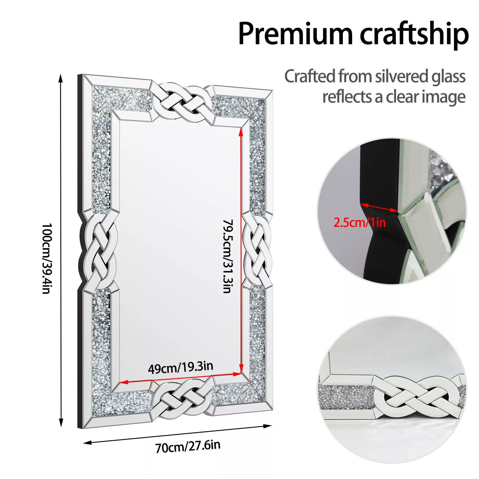 Crafted with precision using 50% premium MDF board and 50% high-quality glass, this decorative mirror is built to impress and endure. The shimmering crushed crystal frame catches every glint of light, offering a stunning statement piece that blends contemporary design with timeless beauty.