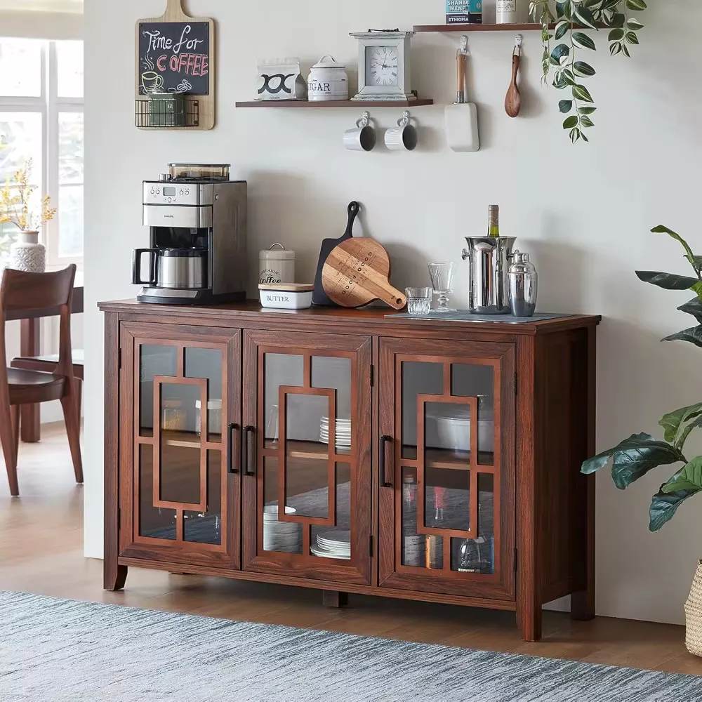 This cabinet isn’t just about looks—it’s built to make your space more organized and efficient. Featuring three large glass doors and adjustable shelves with three height options, it allows you to store items of various sizes with ease. The expansive 55.11” W x 15.75” D tabletop offers ample space for displaying appliances, decor, or your favorite coffee essentials.