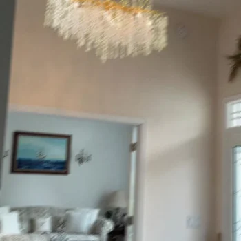 This chandelier has completely transformed my bar/lounge area into the epitome of chic sophistication. The moment it was installed, the entire vibe of the space shifted to what I can only describe as the perfect cocktail lounge atmosphere. It's not just the light that it emits but the way it does so, casting a warm, inviting glow that enhances the cozy yet stylish decor of the bar. The crystals catch the light in just the right way, creating a mesmerizing sparkle that adds an element of luxury without being over the top. It's as if the chandelier whispers of evenings filled with good company, great drinks, and conversations that linger well into the night. My patrons have noticed too, often commenting on the chandelier's beauty and how it adds to the overall experience of the lounge. It's become more than just a fixture; it's a centerpiece that sets the mood, inviting guests to relax and enjoy their time in a space that feels both exclusive and welcoming. Truly, I couldn't have asked for a better addition to my lounge.
