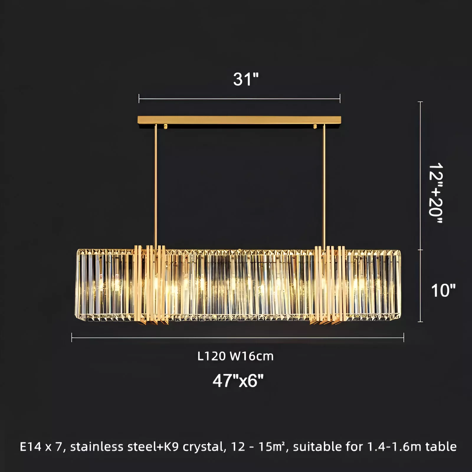 Crafted from high-quality stainless steel, crystal, and acrylic, this rectangular pendant light is built for durability and long-lasting shine. It fits seamlessly over dining tables, kitchen islands, or bar counters. The nano electropainted gold finish ensures lasting color brilliance and resistance to tarnish.