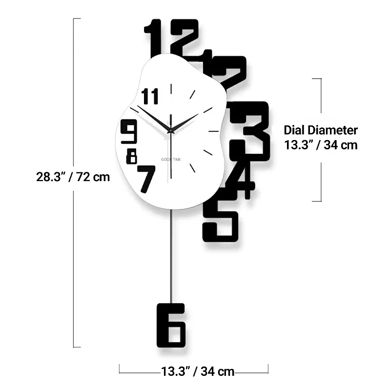 Crafted from premium acrylic and metal, this wall clock offers a perfect balance between durability and aesthetic appeal. Its silent quartz movement ensures your space stays peaceful, while the swingable pendulum adds a touch of motion and sophistication to your décor. The large digital-style display with clear needle pointers makes time reading effortless from any corner of the room.