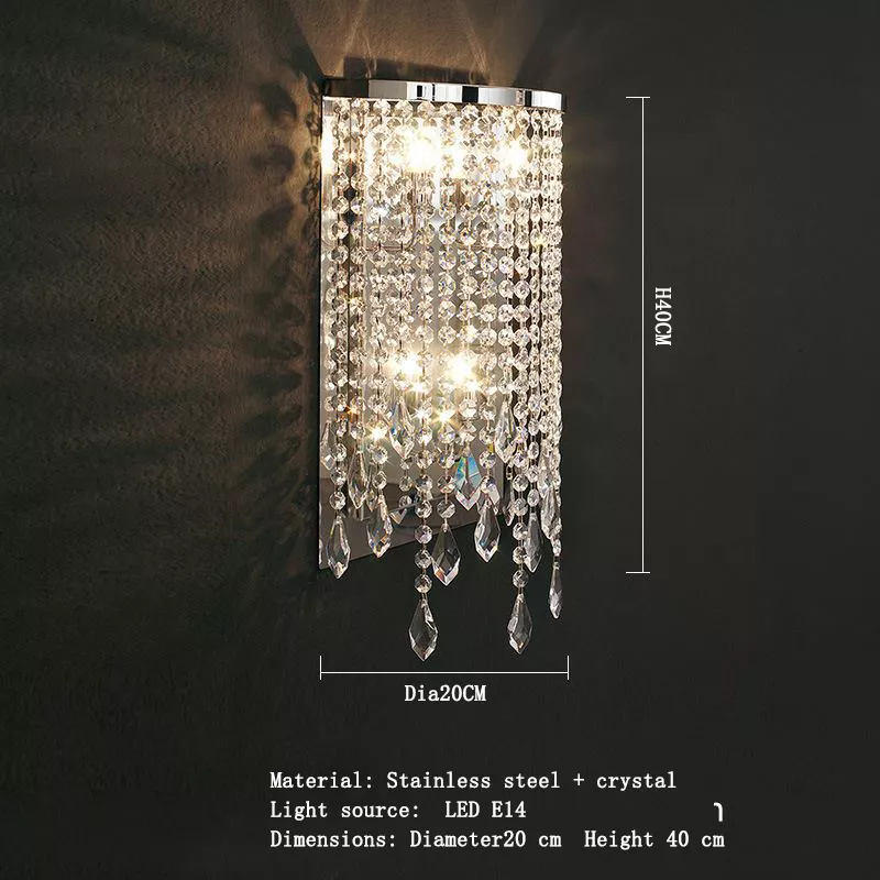 Bring a touch of luxury and sophistication to your home with the Luxury Postmodern Crystal Wall Lamp. Designed for those who appreciate artistic lighting, this wall lamp perfectly balances modern aesthetics with timeless crystal elegance. Its sleek stainless steel frame and shimmering K9 crystals create a stunning visual statement, making it ideal for bedrooms, living rooms, hallways, and upscale villa interiors.