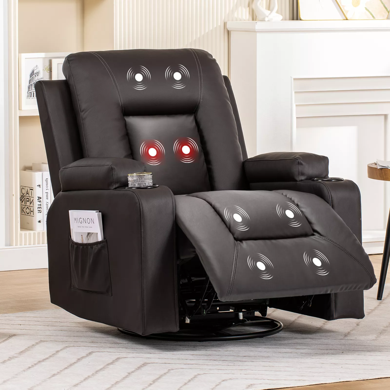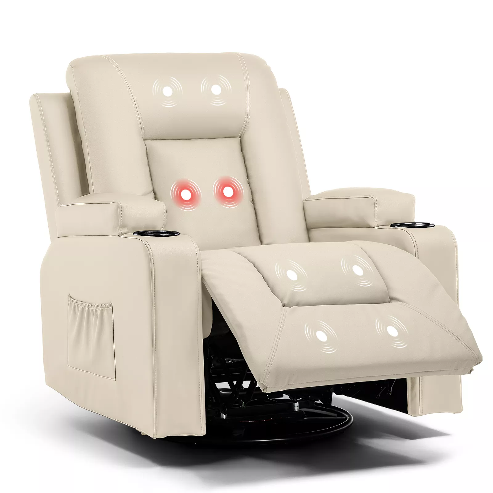 Stay organized and comfortable with thoughtfully designed features. Dual cup holders keep your drinks secure, while the handy side pocket offers space for your phone, remote, or magazines. Say goodbye to spills and clutter—everything you need is within easy reach.