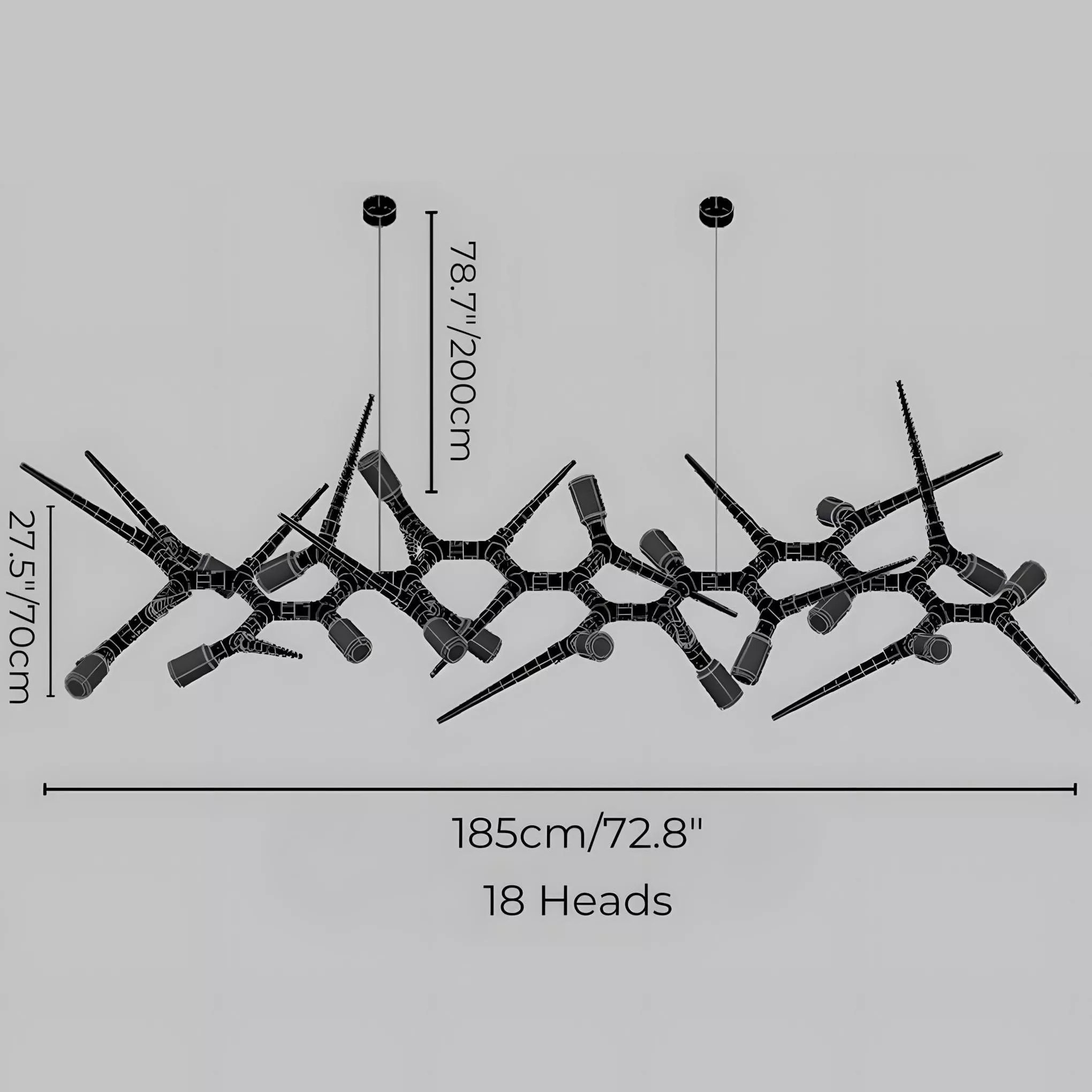 Crafted from high-quality hardware and glass stone, this chandelier exudes strength, durability, and class. Its striking black lamp body delivers a dramatic yet refined appeal, perfect for both modern and classic interiors. Available in multiple sizes the chandelier adapts seamlessly to rooms of any scale. The adjustable hanging line allows for customized installation heights, ensuring it fits perfectly in any setting.