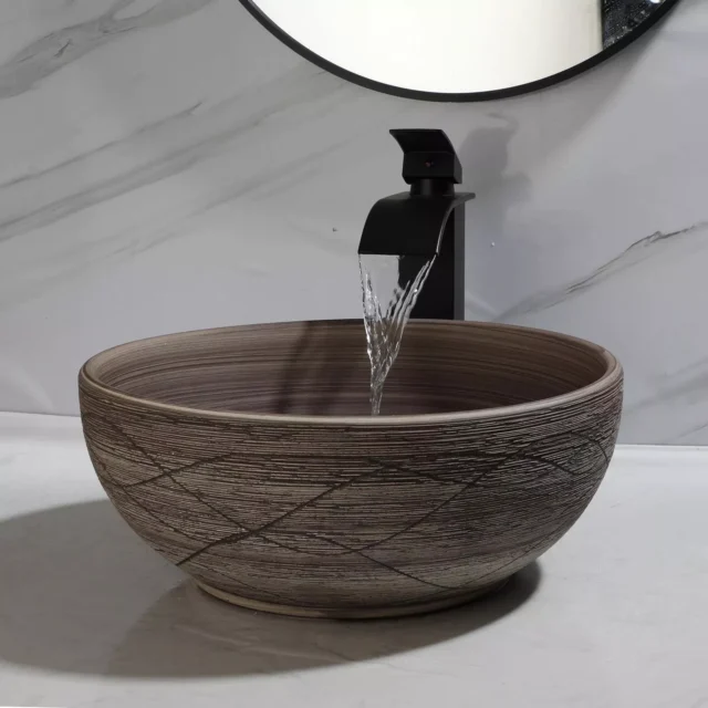Crafted from premium-quality ceramic, this vessel sink is designed for durability and beauty. The stunning round shape fits comfortably on your countertop while providing ample capacity for all your washing needs, with a generous volume of 12 liters. The included waterfall faucet adds a modern touch, allowing for a smooth, cascading flow of water that creates an enjoyable experience each time you wash. It’s the perfect combination of style and practicality, turning everyday tasks into a luxurious experience.