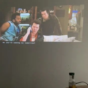 I've been using this projector for around a month now. It's been great for my Game of Thrones marathons, watching an episode every other night until I finished the season. My wall isn't the smoothest and it's painted grey, but the image still comes out looking sharp. It kinda gives me that drive-in movie vibe, which is pretty cool, but the projector makes everything brighter, making even the dark scenes easy to see. I also watched Antz to check out how it handles bright and colorful scenes, and it didn't disappoint. The only thing is, the built-in speaker isn't the best. Sometimes, it's hard to hear over the noise the projector makes, and it gets even harder when the heating or AC is on. But hooking up an external speaker fixes that issue no problem. If the price drops again, I'm thinking of getting another one. And maybe a proper screen too, because I reckon a smooth, white background would really take the picture quality up a notch, making a good viewing experience even better, especially considering the price.