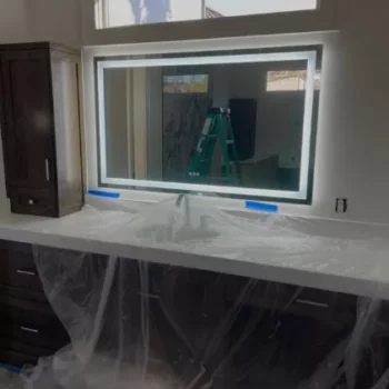 We bought this Mirror/LED combination for our bathroom renovation. After removing the old light fixture, we rerouted the wire to a newly installed remodel outlet box positioned 24" above the countertop. The mirror's installation bracket allowed for ample side-to-side adjustment, and the flat plug made installation a breeze. We're impressed with the dimming capability, the option to change the light color, and the built-in defogger. Overall, it's a fantastic product with quality packaging and swift delivery.