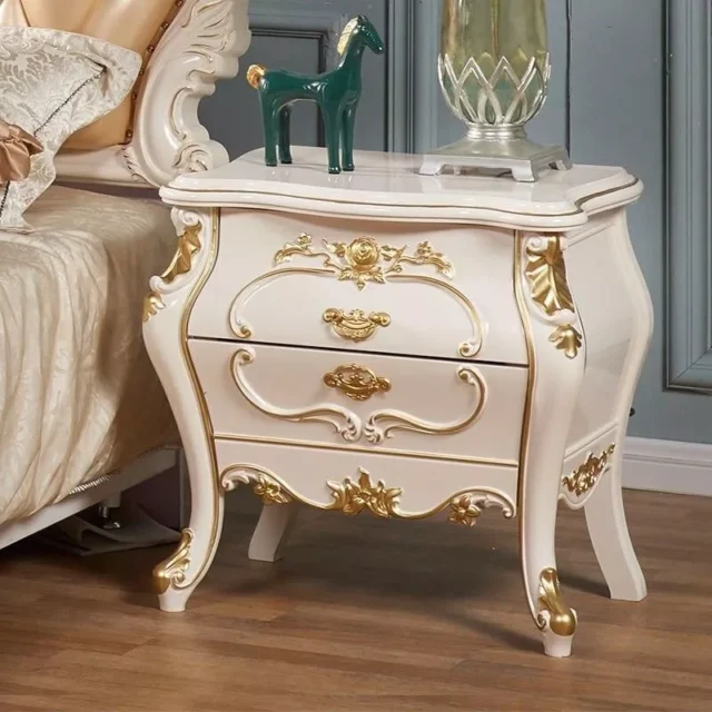Bring a touch of sophistication and convenience to your bedroom with this Modern LED Nightstand with Charging Station. Designed with a sleek white finish and accented with golden metal elements, this piece adds both charm and functionality to your home. The floating double-suspension design gives it a luxurious modern feel, making it the perfect bedside companion for contemporary interiors.