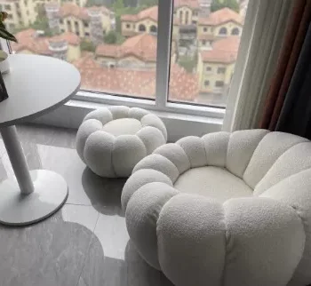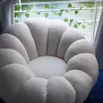 Introducing our Modern Minimalist White Velvet Lazy Sofa, a perfect blend of style and comfort for your living space. Designed to add a touch of elegance and coziness to any room, this chair is not just a piece of furniture, but a statement of modern living. Its unique pumpkin shape and plush lamb cashmere fabric invite you to relax and unwind in its welcoming embrace.