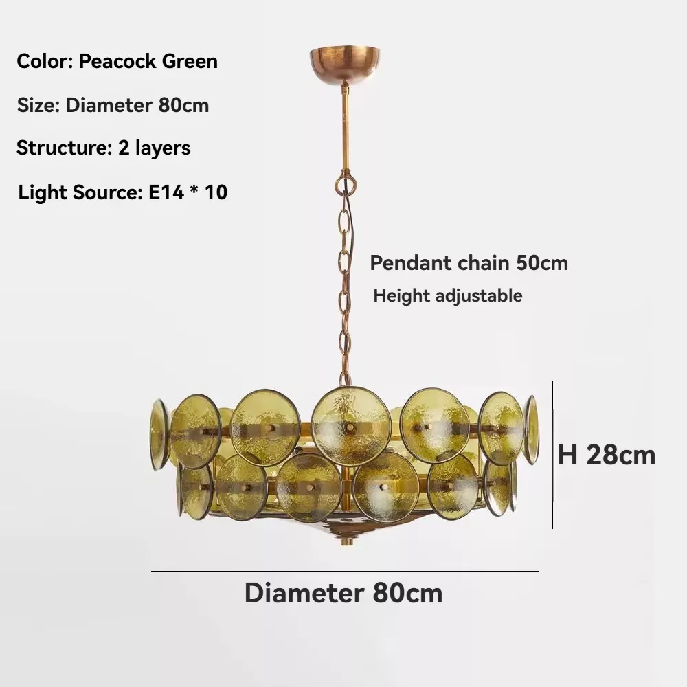 Every detail of this chandelier reflects exceptional artistry. Crafted from high-quality iron and crystal glass, the light’s electroplated and polished finish ensures long-lasting brilliance. The stained glass shades radiate soft, diffused light both upward and downward, highlighting the chandelier’s vintage charm and French-inspired grace. Designed for versatility, it comes in sizes featuring 8, 10, or 12 LED E14 bulbs—perfect for illuminating areas from 160 to 320 sq. ft. (15–30 m²).
