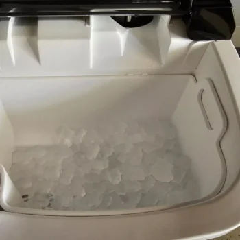 Well, let me tell you about this ice maker I got. It's just out of this world fantastic! Seriously, it's like having my own personal bartender right in the comfort of my home. Whenever I have folks over for a little get-together, it’s always ready to serve up some chilled goodness. The speed at which this baby operates is nothing short of impressive. No more waiting around for what feels like forever to get your on the rocks. This machine whips up a batch faster than you can say "ice cold". And we're not talking about half-melted cubes that water down your drinks either. Now, efficiency-wise? Oh boy! This thing is top-tier all the way! It doesn't waste time or energy and gets straight to business - cooling down those beverages without breaking a sweat (or making one). You won't find yourself constantly refilling it either; one fill-up keeps the good times rolling for quite a while. But here's where things really heat up... well cool down actually: the nugget ice. These aren’t your average run-of-the-mill cubes. They’re these perfect little nuggets of frosty delight with just the right size and consistency – not too big that they take forever to melt but also not so small they disappear instantly into your drink. And as far as satisfaction goes? Let me put it this way: if happiness were an appliance, then this purchase would be pure joy incarnate! The day I brought this gem home was truly a glorious one and every day since has been cooler because of it (pun totally intended). So yeah, if you're looking for something quick and efficient that'll keep your drinks perfectly chilled during any party or gathering – look no further than our trusty ice-making friend here.
