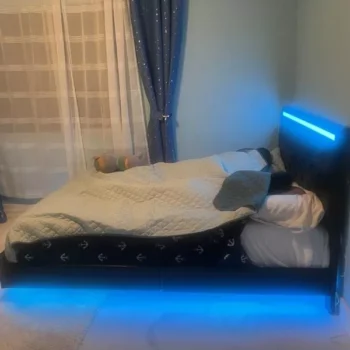 After months of sleeping on this fantastic LED upholstered bed frame, I can confidently say it's a dream come true. The promise of no-noise comfort is 100% accurate; I haven't heard a single squeak or creak, ensuring my sleep is uninterrupted and peaceful. The LED lights add such a personalized touch to my bedroom, creating the perfect ambiance for winding down at the end of the day. The assembly process was straightforward, and the frame's durability is evident—it feels like it could last a lifetime. And let's not forget the built-in USB ports, which have been incredibly convenient for keeping my gadgets charged up. Investing in this bed was a decision well made!