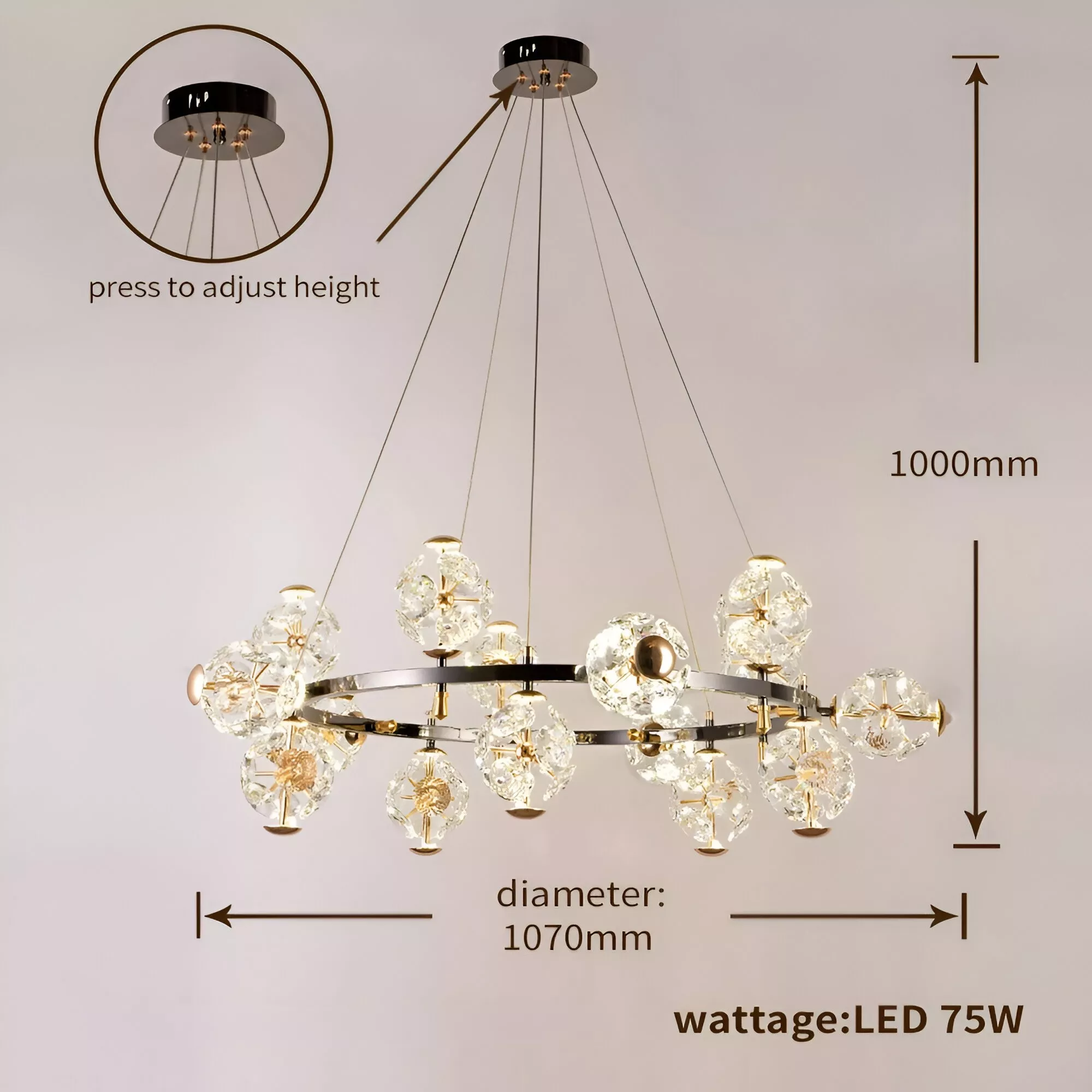 Unlike ordinary lighting fixtures, this designer pendant light offers more than just illumination—it’s an experience. The interplay of crystal and metal embodies modern artistry, making it a conversation starter in any room. Whether you’re hosting a dinner party or unwinding after a long day, the SUN Flower Crystal Chandelier sets the perfect mood with elegance and charm.