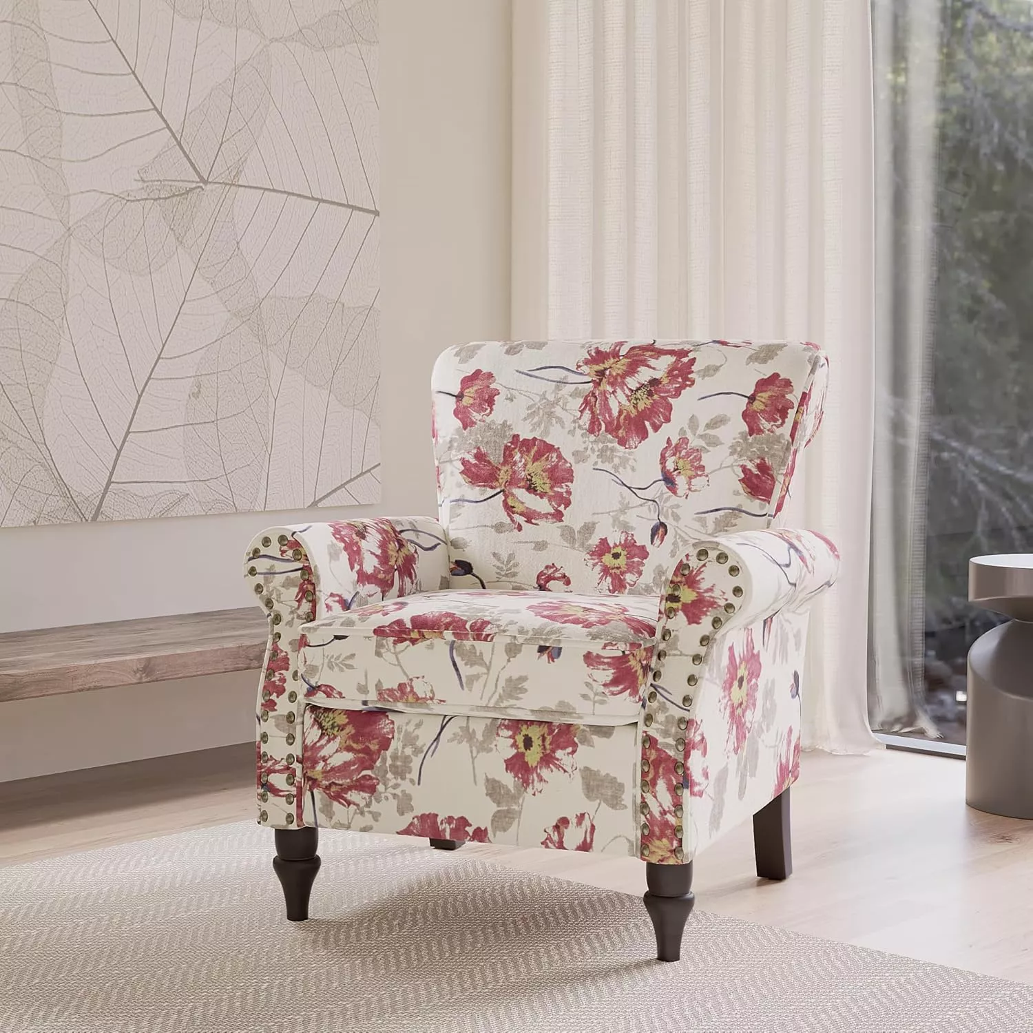 Bring timeless charm and cozy sophistication into your home with this Upholstered High Back Floral Wingback Armchair. Designed to make a statement, this armchair combines refined craftsmanship with plush comfort, creating the perfect seat for reading, relaxing, or simply enjoying a quiet moment. Its elegant floral upholstery adds a touch of botanical beauty, while the classic wingback silhouette and nailhead trim give it a vintage-inspired appeal that fits effortlessly into both modern and traditional interiors.